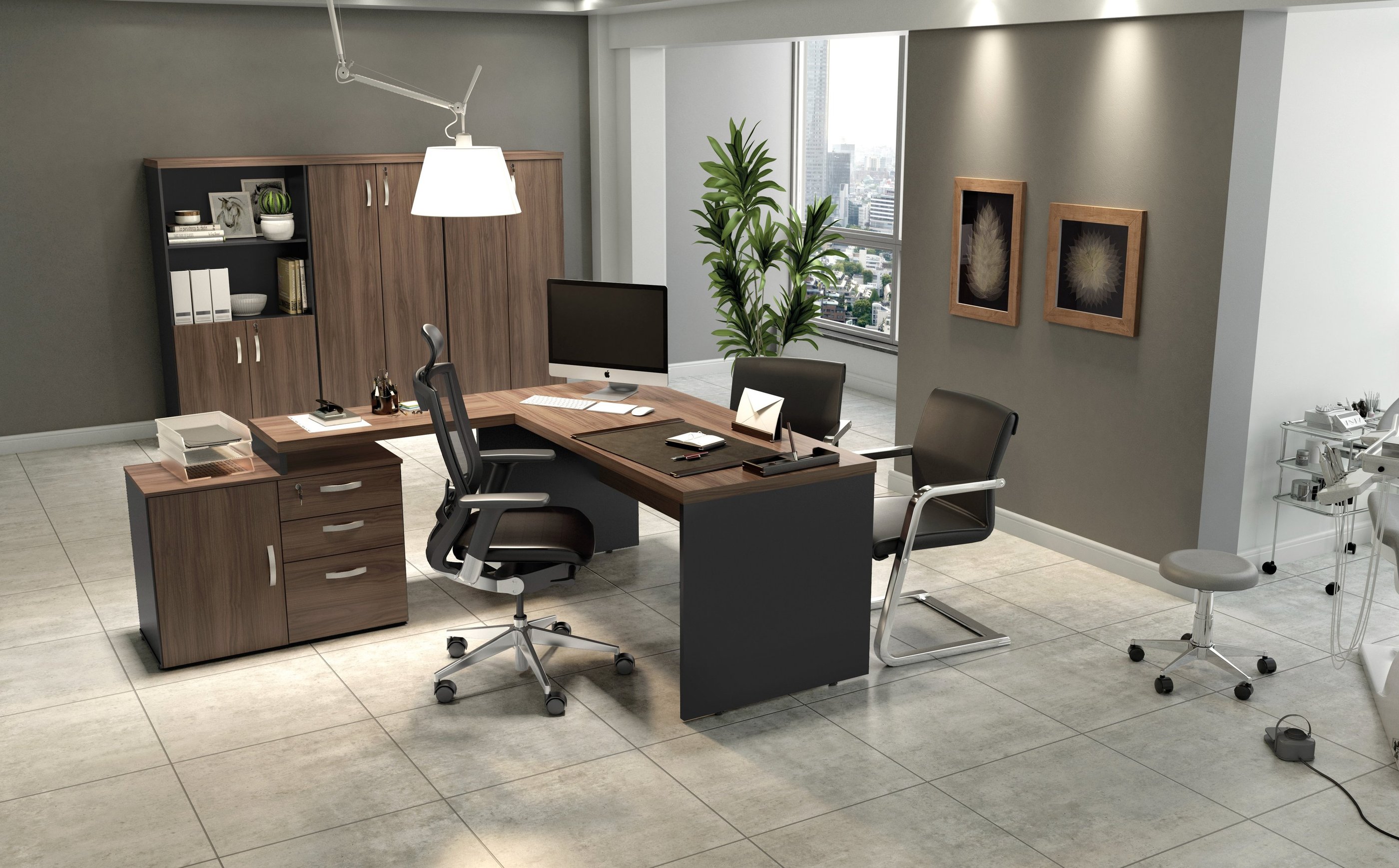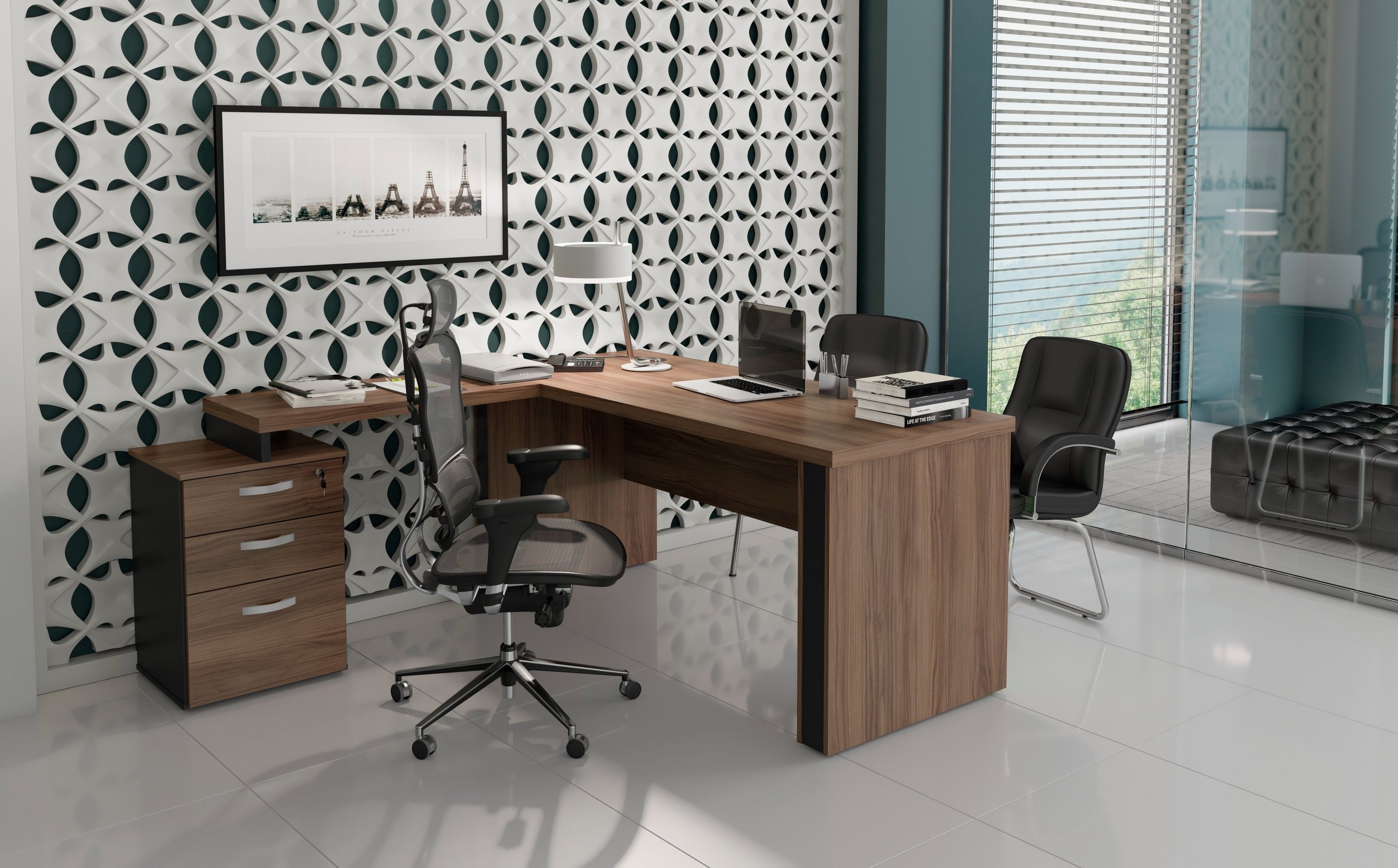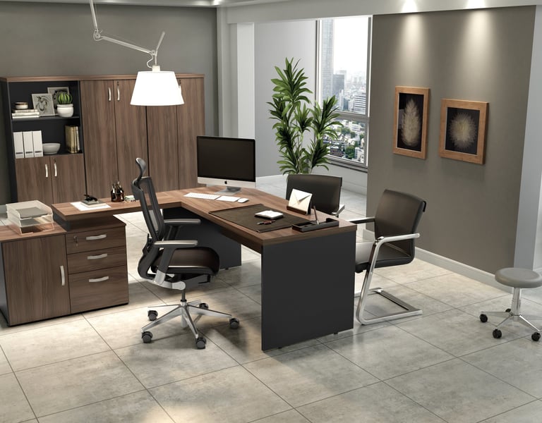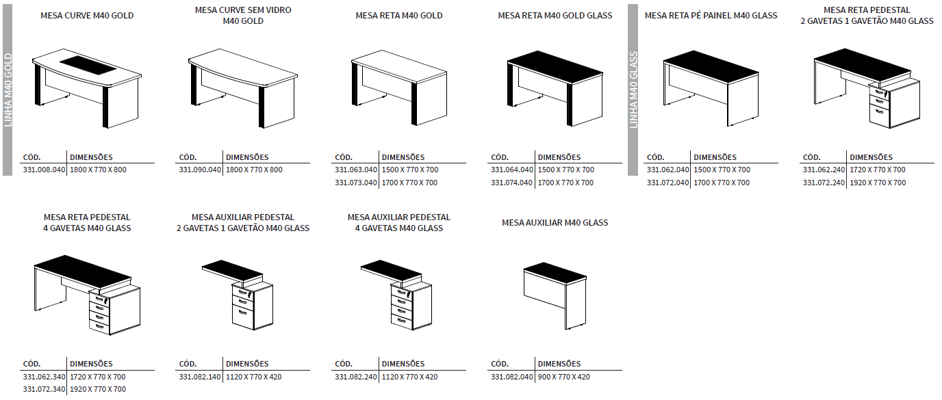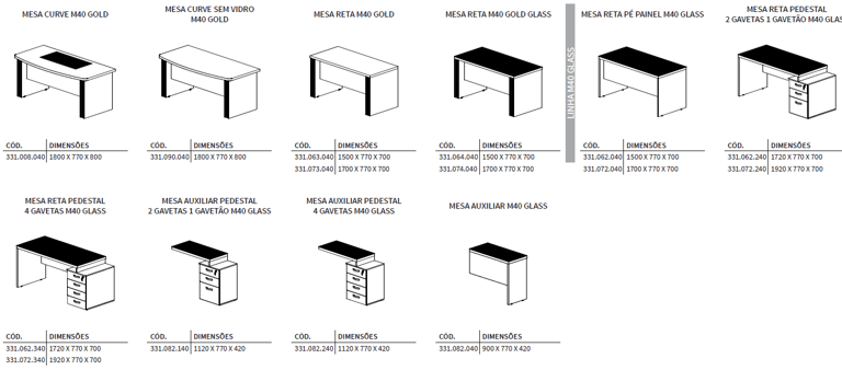 A imponência e as combinações de cores são características marcantes da linha M40, muito utilizada por profissionais liberais. Os tampos de 40mm são ideais para a valorização do ambiente de trabalho.