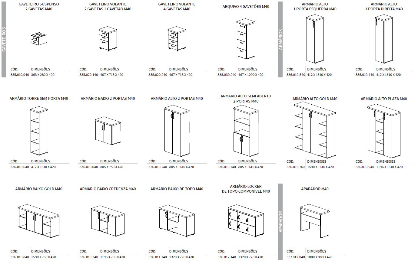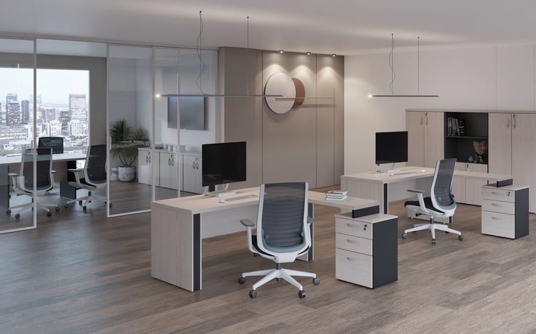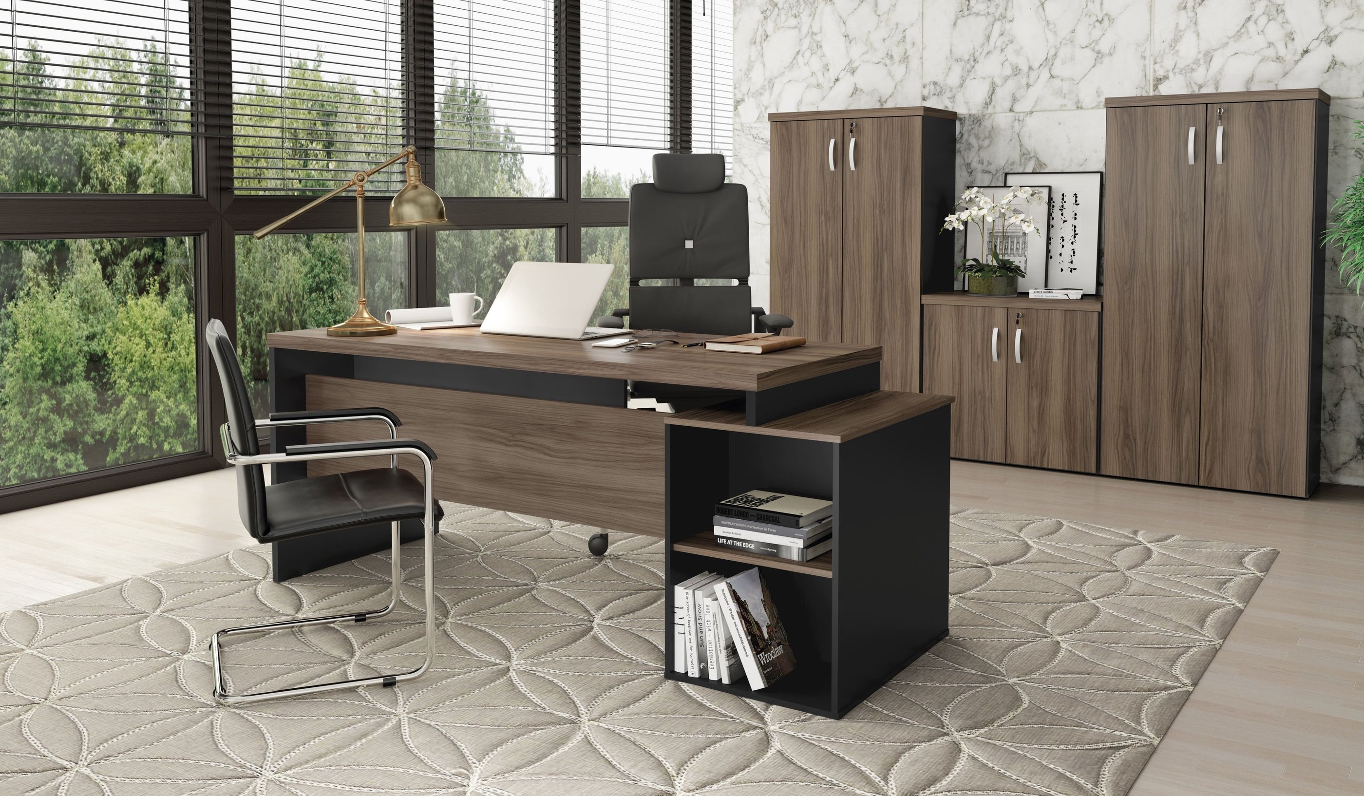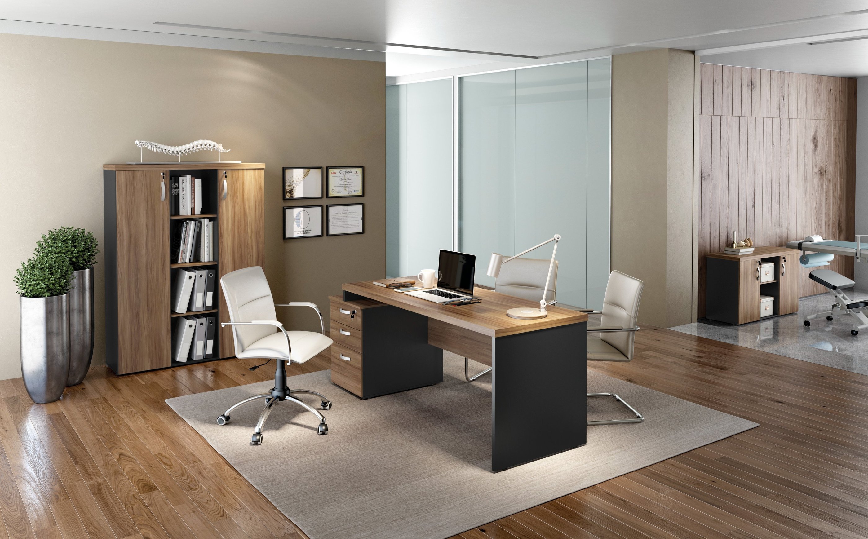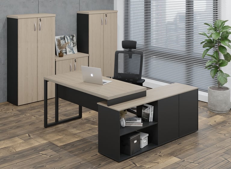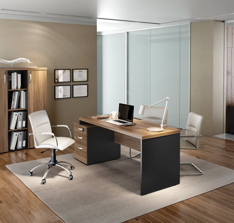 A imponência e as combinações de cores são características marcantes da linha M40, muito utilizada por profissionais liberais. Os tampos de 40mm são ideais para a valorização do ambiente de trabalho.