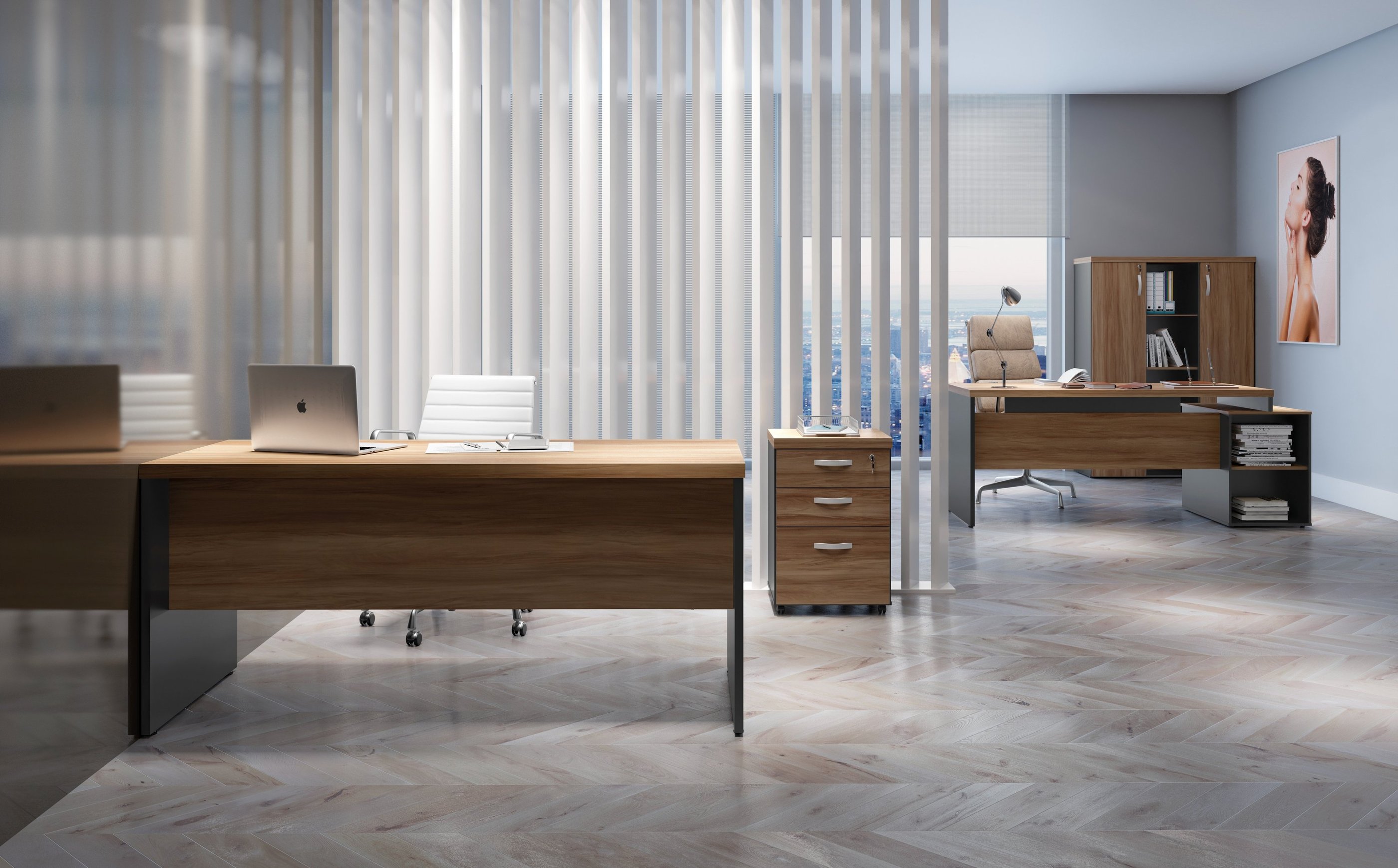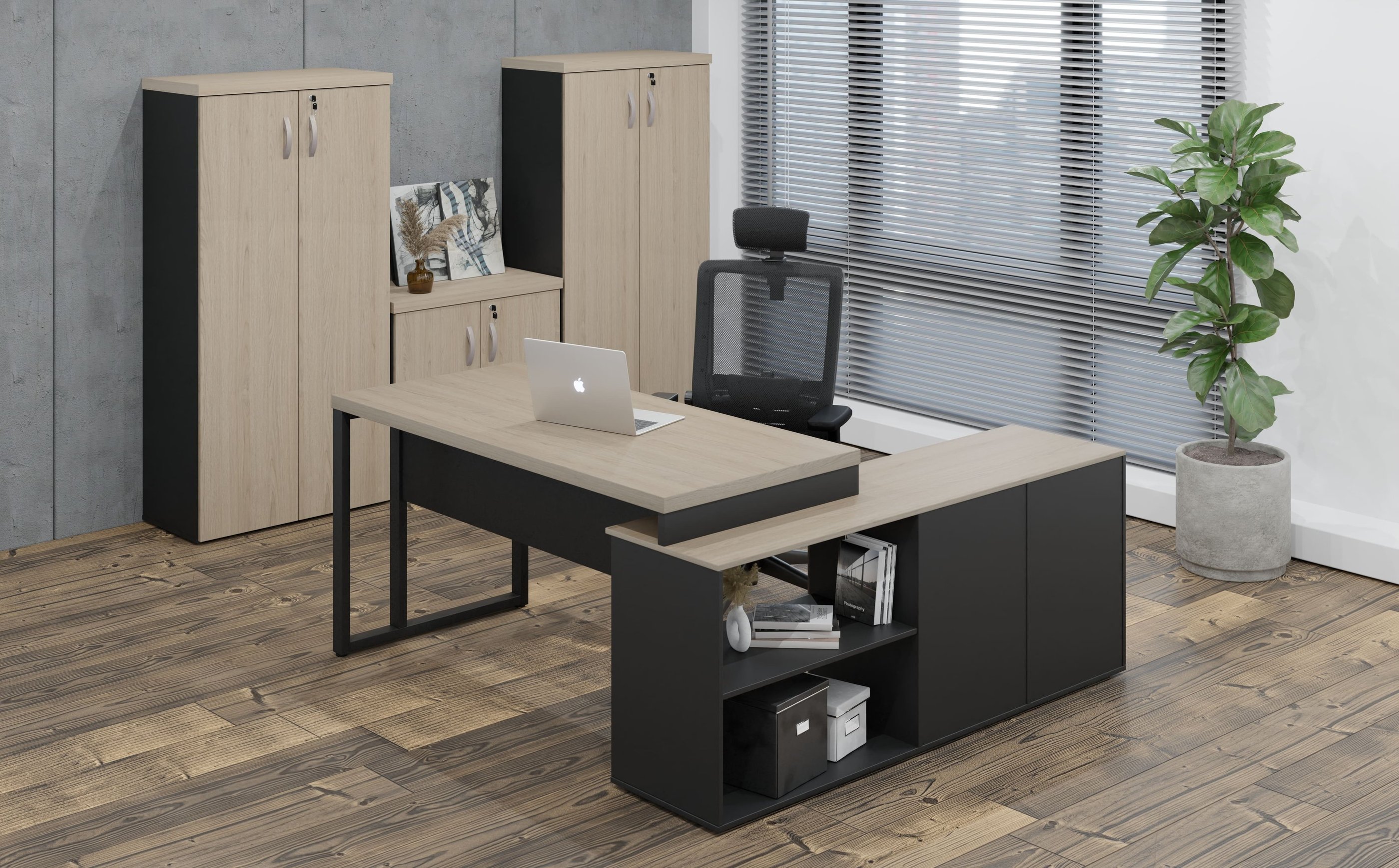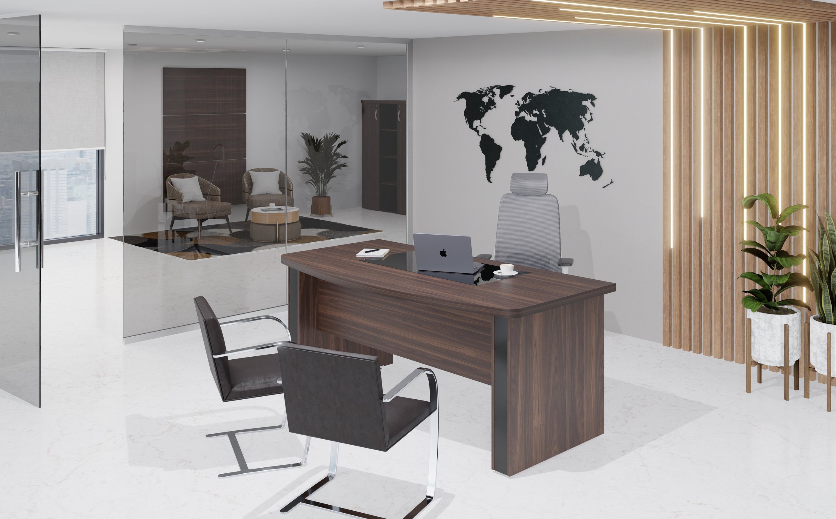 A imponência e as combinações de cores são características marcantes da linha M40, muito utilizada por profissionais liberais. Os tampos de 40mm são ideais para a valorização do ambiente de trabalho.